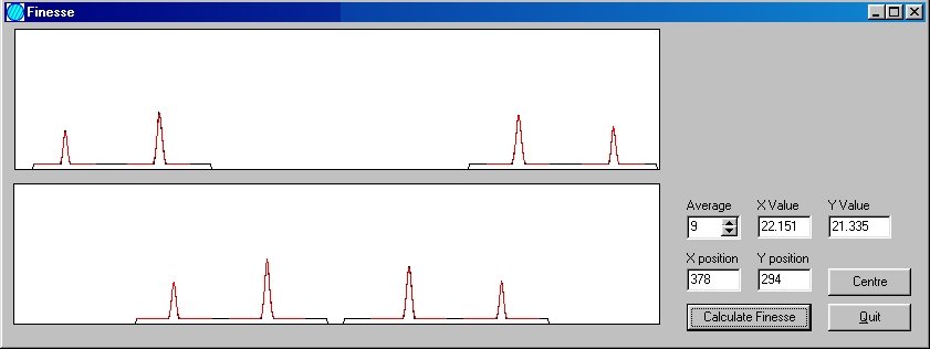 Sub-pixel accuracy, obtained by analysis of multiple lines through the image and by tracking the shape of the transmission peaks, gives a measurement with high dynamic range. This data is then used to calculate the finesse of the etalon.