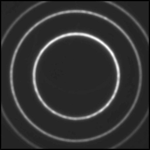 The CCD image of the ring pattern is digitised, loaded into a framestore and displayed on the PC screen.